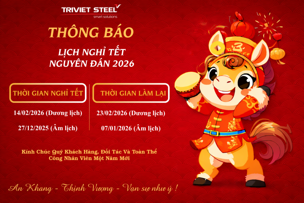 Công ty Nhà Thép Trí Việt xin thông báo đến Quý đối tác & Quý khách hàng lịch nghỉ Tết Nguyên Đán Bính Ngọ 2026:
